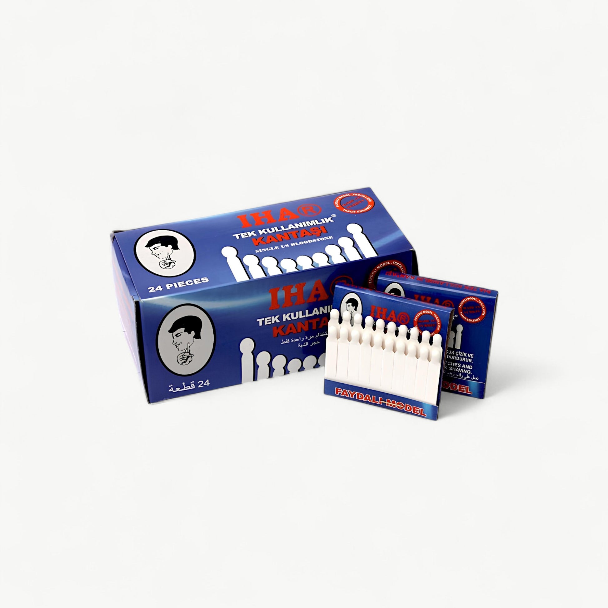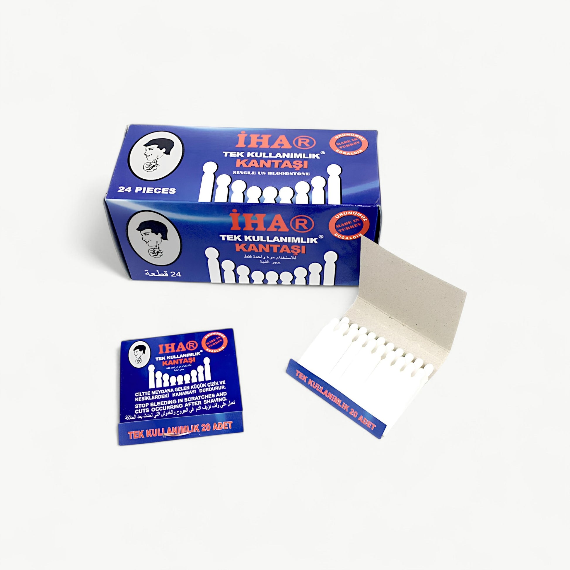 Stop shaving cuts instantly with IHA Styptic Matches. Each wallet contains 20 alum pencil sticks designed to quickly seal minor nicks and cuts from shaving. Perfect for barbers and personal grooming. Easy to use, hygienic, and travel-friendly.