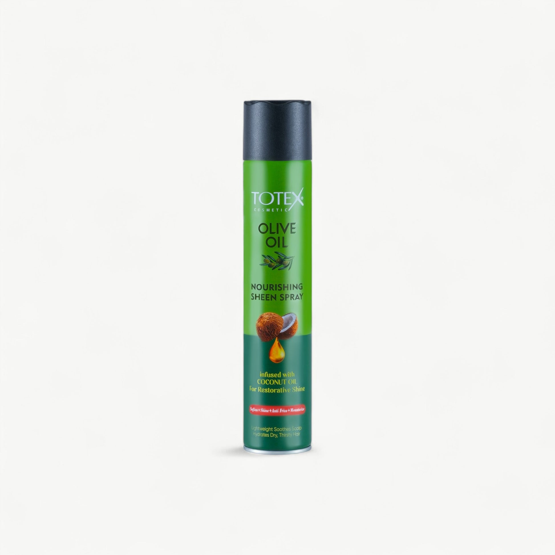 Totex Olive Oil Sheen Spray is enriched with coconut oil to provide restorative shine and nourishment. This lightweight spray softens hair, controls frizz, hydrates dry scalp, and leaves hair silky smooth and manageable.